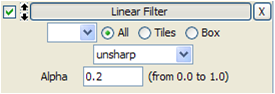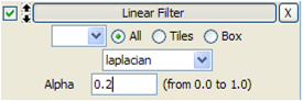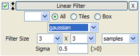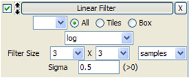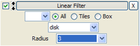 Basic Description: Linear is a linear filter operation that can be used to run low-pass filters (average, disk, or Gaussian) to smooth the data, and high pass filters (Laplacian, log, and unsharp) to accent edges and transitions.
